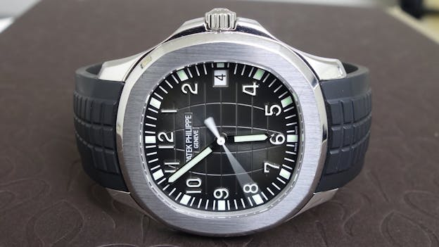 First launched in 1997 as the first Patek Philippe equipped with a rubber strap, the Aquanaut caused both a scandal and a sensation on its debut. For 2007, this Patek Philippe Aquanaut 5167A shown here was released as a tenth-anniversary upgrade of its increasingly iconic bad-boy sports model.