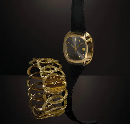 The Black Tie housed the first Swiss production quartz movement, the Beta 21, which was a very big caliber – 30.9mm x 26.5mm, and the thinnest version of the Beta 21 was 6.2mm thick. For a contrarian like Warhol the size must have been a feature not a bug; the Black Tie was produced for a relatively short period of time, with production ceasing in 1977 by which time Piaget had developed its own ultra-thin quartz movements.