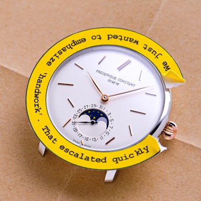 That’s where I feel most profiles of André and seconde/seconde/ fall short. They miss this part of his thinking. They miss his philosophy. Comparing him to Banksy doesn’t make sense. Banksy’s whole purpose is political provocation, to make the powers-that-be uncomfortable. André wants to humanize watches, and our relationship with them. He’s someone with a deep love for horology. He wants to dress it down, literally and figuratively, and strip away the seriousness, all while respecting an industry he’s spent years fighting to be accepted by.