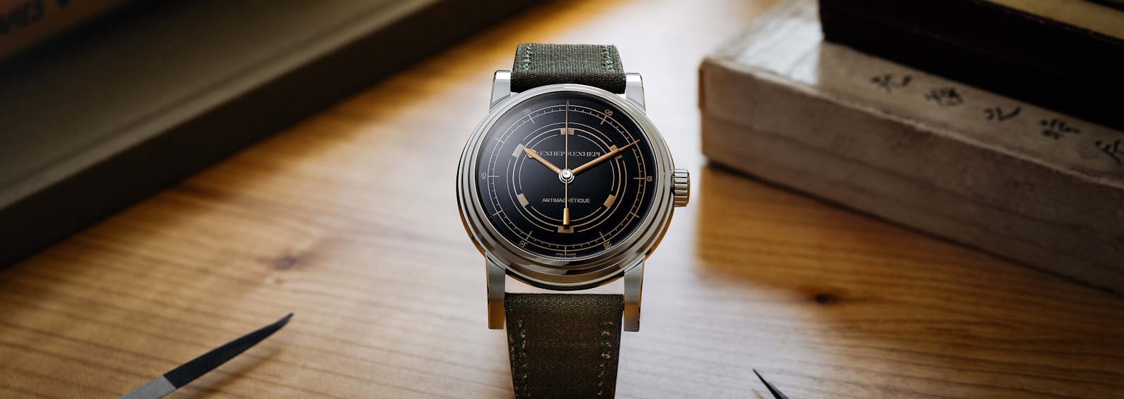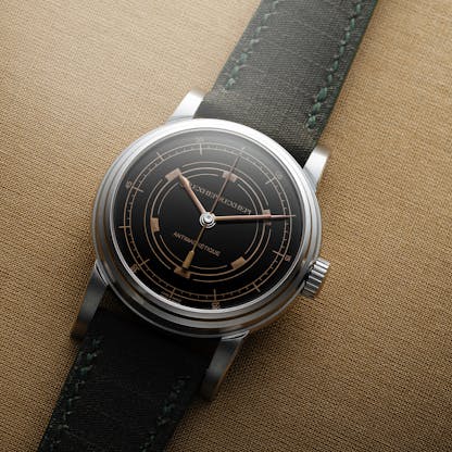Despite the vintage inspiration, the Chronomètre Antimagnétique is thoroughly modern and, in keeping with Rexhepi’s other work, a technical delight. The zero-reset function allows a level of precision in setting the watch that mid-century scientists would surely have appreciated.