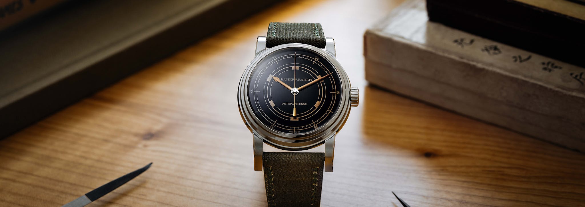 As for the watch itself, suffice to say — it’s good. Very good. Drawing inspiration from mid-century anti-magnetic scientists’ watches, the Chronomètre Antimagnétique is a hugely compelling update on the equivalent watches from the 50s and 60s as produced by brands like Patek Philippe and Jaeger-LeCoultre. The Chronomètre Antimagnétique’s wonderfully balanced sector dial design balances classic inspiration with the recognizable layout of other pieces produced under the Rexhep Rexhepi name in an evocative celebration of those early scientific pieces.
