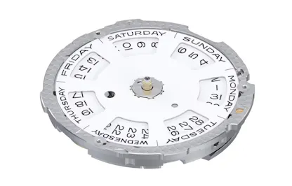Probably the biggest transitions in the history of the Day-Date occurred in 1977, when the caliber 3055 was introduced and which brought a quickset date to the Day-Date, and again in 1988, when Rolex introduced the caliber 3155 and a double quickset function, allowing both the day of the week and the date to be rapidly set from the crown. The Day-Date was the first calendar watch to show both the day of the week and the date, and, moreover, both indications switched instantly at midnight. The switching mechanism was and is a major technical achievement, as both the disk carrying the day of the week, as well as the date disk, must jump instantly and simultaneously. This is achieved through a mechanism in which a cam is progressively loaded under the pressure of a tension spring – the cam snaps forward at midnight when the high point of the cam passes the spring (the action is similar to that of a reset hammer on a chronograph return to zero heart cam).