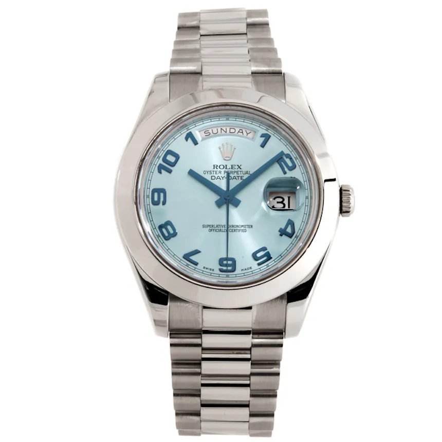 The Rolex Day-Date II features a trifecta of advantages for collectors: it’s a discontinued Rolex *flagship* model; production was brief (2008-’14); and the Day-Date II is destined to remain the largest Rolex “President” available new or pre-owned. And The 1916 Company has an example of the rarest Rolex Day-Date II: the platinum model.