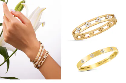 Another stand out is the Love in Verona bangles designed with four-petal diamond flowers dancing around the wrist. A perfect add-on to a stack of bracelets, they are equally elegant worn solo.