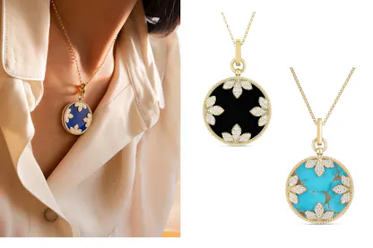 If you’re investing in one great jewel this season, make it a long, colorful pendant necklace. Effortlessly chic, it’s the kind of signature jewel that can dress up a T-shirt and jeans or add a touch of personality to a classic blazer. Coin’s latest designs include striking options from the new Venetian Medallions collection with floral motifs in mother-of-pearl, turquoise, black jade, or agate, inspired by the paterae ornamental medallions found on historic Venetian facades.