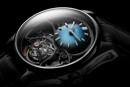 Moser has done openworked versions of one of its tourbillons in the past – following on its collaboration with M&F, the H. Moser x MB&F Endeavour Perpetual Tourbillon, Moser produced the Moser Pioneer Cylindrical Tourbillon Skeleton in 2022 – a model notable for its depth, as well as the transparency of the movement which is thanks to the removal of a considerable amount of metal from the baseplate.