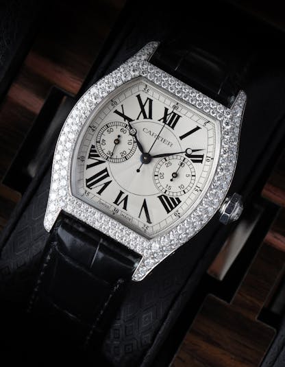 Although the Collection Privée Cartier Paris (CPCP) watches were produced for a relatively short period of time, from 1998 to 2008, the watches loom large in Cartier’s history for serious collectors. CPCP became the precursor to Cartier’s current strategy of producing, in small numbers, new versions of some of its most important watches. In the current Privée collection, Cartier brought back classics including the Tank Chinoise, the Asymétrique and the Cloche. From the original CPCP collection, Cartier launched new versions of such iconic watches as the Tank à Guichets and the Tank Cintrée — and it also produced a new version of one of its rarest and most collectible watches, the Tortue Monopoussoir (Monopusher) chronograph.