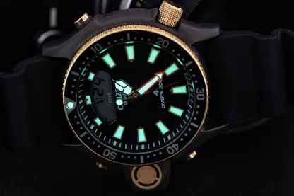 The bezel might seem unnecessary given all the functions connected with the electronic depth gauge, including timing operations, but in addition to the fact that it never hurts to have a backup system, the bezel is required by ISO 6425 and even in a watch like the Aqualand 40th, it’s simple prudence to have a failsafe. Jason Heaton points out in his Substack story that he always wears a dive watch on the wrist opposite his dive computer as the latter can and do fail – twice, in his experience, which is not a whole lot but I imagine it only needs to happen once for you to want it never to happen again. The bezel clicks on the JP-2008-06E are pretty sharp – you’re going to feel yourself pushing past each one as you turn the bezel – but it’s good tactile feedback, especially if you’re wearing gloves.