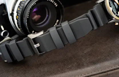 The strap is a quite muscular affair – thick, but reasonably flexible; it’s made of a plant-based polyurethane called BENEBiOL. The watch comes with a wetsuit extension which is simplicity itself – it’s just a strip of vented rubber with a hole for the tang of the main buckle at one end, and an additional buckle at the other end. The only thing I miss is the no decompression limits table that used to be printed on the Aqualand strap, although you can buy OEM straps with the table (which is tempting). The no deco limits table basically shows you how long you can stay at a give depth and still be able to surface without doing decompression stops – at 30 meters, according to the old Aqualand strap, you have 25 minutes to noodle around before you have to start doing decompression stops on the way up.