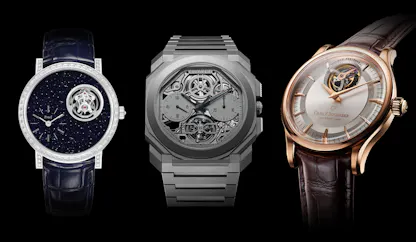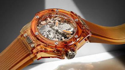 In similarly modern vein, and even more outrageously technical to boot, there are two unmissable references. One of these is Hublot. With timepieces likes its Big Bang Tourbillon Automatique Sapphire Orange, the manufacture has demonstrated its expertise with the tourbillon (technically) and with sapphire (aesthetically).
