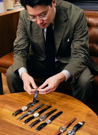 There is no set of watches that I always bring with me, it just depends on how I feel. The only exception to this is if there are certain people I need to see who might appreciate me wearing a certain watch, in which case I’d do my best to accommodate. There are pieces that tend to travel with me more than others. My Naoya Hida Type 1B, my Audemars Piguet 34mm Royal Oak in Tantalum/Steel, my Christian Klings and my Patek 96 are a few that spring to mind.