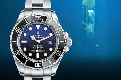 When it was first unveiled in August of 2014—a surprising time for a Rolex unveiling, considering the brand seldom launches a new watch outside the halls of Baselworld—the Rolex Deepsea Sea-Dweller reference 116660 immediately struck a chord with collectors and enthusiasts at large. The 44mm beast features a unique gradient dial that changes from a rich blue to black as it descends from 12 o’clock to 6, a purely aesthetic design feature created as a nod to James Cameron, and his incredible solo descent into the Mariana’s Trench—some 10,900 meters below the surface. The green text color used on the dial used for the word Deepsea is the same as that of Cameron’s submersible used on the 7h journey to the bottom of the sea. While the dive itself took place two years prior in 2012, the release was timed alongside the launch of of Cameron’s documentary, Deepsea Challenge 3D, that followed in 2014. Though recently discontinued, the 116660 Deepsea James Cameron remains a highly desirable and collectible timepiece.