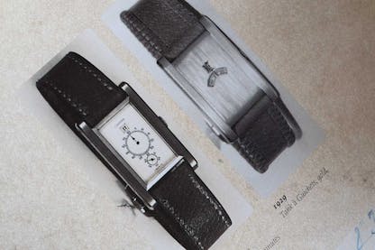 The Cartier Tank à Guichets is one of the best known and, at least in its original incarnation, one of the most enigmatic of all Cartier Tank models. The à Guichets (“guichet” literally means, “ticket window” and thus, a small aperture) is first listed in Cartier’s catalog in 1928 and it’s not known how many of the original series were made; in 1928, Cartier only produced 68 Tank watches of any kind, and, as a rule, watches were made to order and exhibit variations from watch to watch consistent with a hand-made product. Originals appear at auction exceedingly rarely; cartier_signature on Instagram has published a list, which consists of just five original models sold at auction between 1998 and 2024. Original models are thus rarely encountered and essentially impossible to collect in any meaningful way – the à Guichets was a special order model through the 1930s and did not return to production at Cartier until 1996.