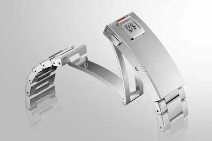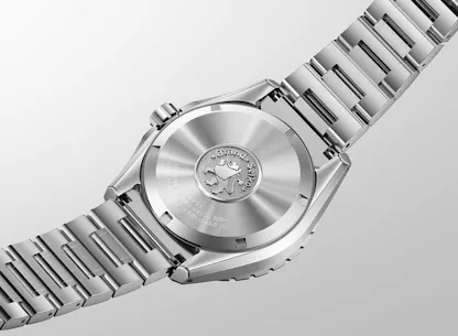 The watches feature the large indexes and hands characteristic of the Evolution 9 Collection, although slightly modified here from the usual multifaceted designs, in order to allow the use of large amounts of Lumibrite; the edges of the hands and indexes are diamond cut, as with other Evolution 9 watches, which is not only an aesthetic feature, but also aid to legibility. Caliber 9RB1 draws on the same technical refinements as last year’s 9RB2, using a vacuum sealed quartz timing package and IC, and using a pre-aged (three months) quartz oscillator. The timing package also incorporates corrections for temperature drift based on the temperature rate variation of each crystal, and the movement has a rate trimmer for fine adjustment, should it be required over the longer term.