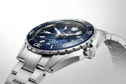 The caliber 9RB1 also moves the power reserve indicator back to the dial side, which is where it has typically been located in Spring Drive watches; the decision is a practical one for a diver’s watch, where it ensures at-a-glance verification of remaining running time.