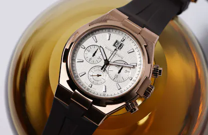 Patek is the icon of classic, conservative and often highly complicated watchmaking and Audemars has re-invented itself almost entirely in the last 20 years, as a company dominated by the Royal Oak and the Offshore, but Vacheron’s production – including watches like the Overseas, the vintage and modern 222s, as well as its idiosyncratic take on the design of complications – has a lot of the exuberance of the best of classic car design. By the way, yes, the Overseas is technically a sports watch but in this instance, it’s a match not because of its water resistance, but rather thanks to its sprezzatura.