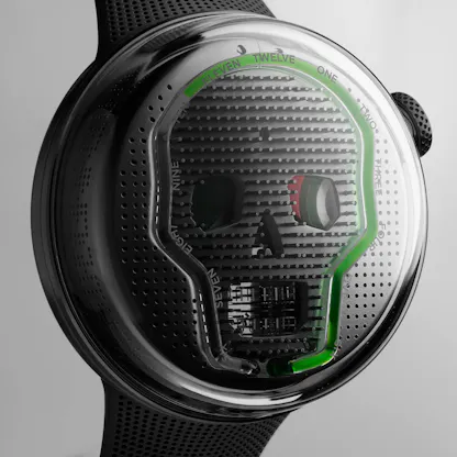 However, “The Accurate” takes a much darker approach. On this watch, the hour hand spells out “remember,” and the minute hand ominously reads “you will die.” With little else on the dial, it’s hard not to focus entirely on this chilling message, rather than the actual time. The company’s website perhaps explains it best: “The Accurate is a link to the tradition of the memento mori—an object designed to remind us that life is brief and that we should seize the moment while we are here. The design is also a play on the notion of accuracy in timekeeping—this watch is accurate in a rather more fundamental sense than traditional horological measures.”