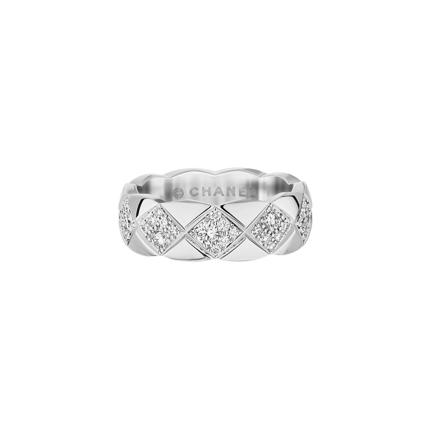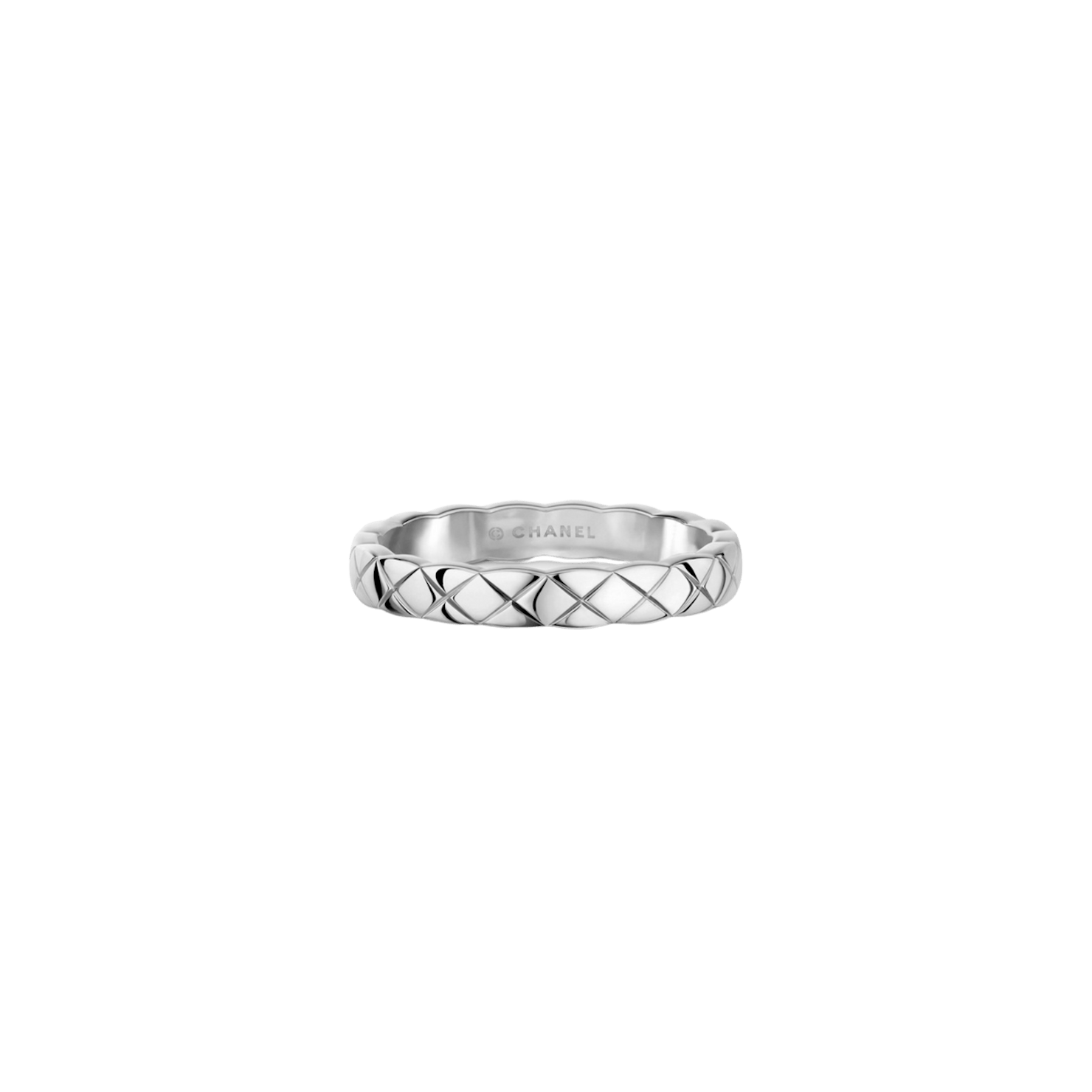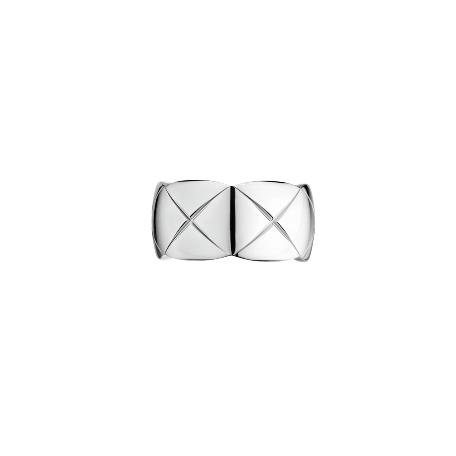 For a bold sculptural statement, the Coco Crush White Gold Quilted Large Ring offers wider proportions and a luminous finish, celebrating the maison's dedication to architectural form and refinement.