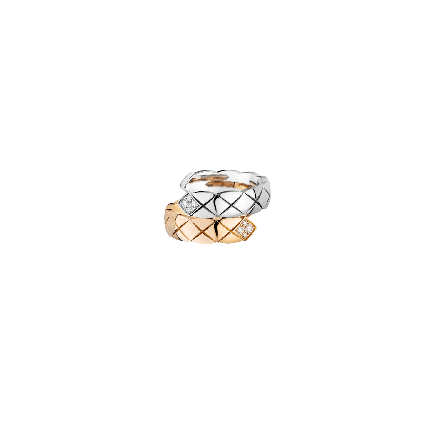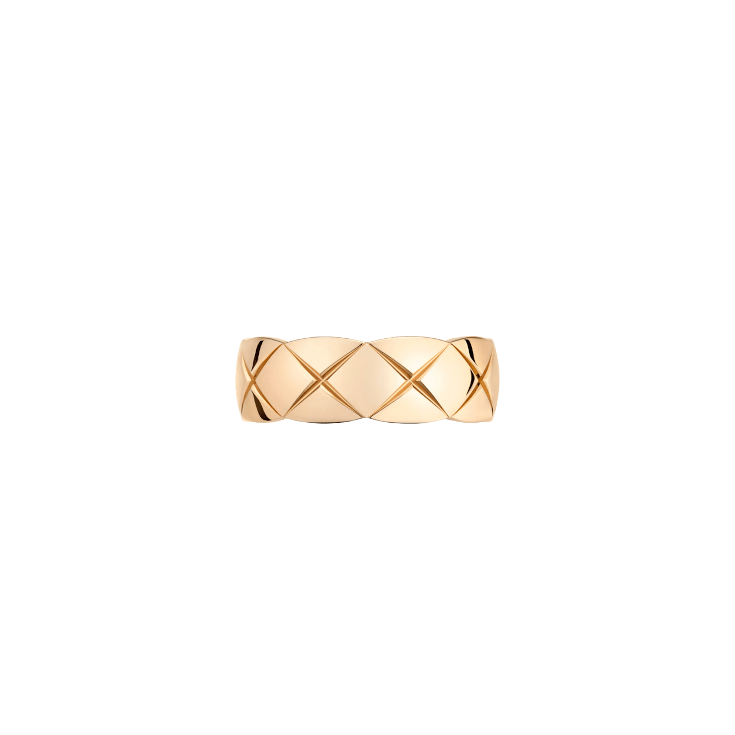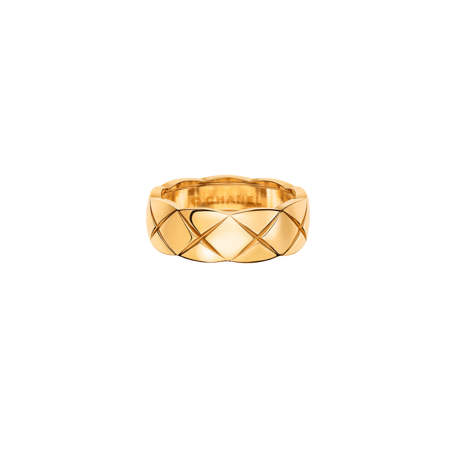 For a bold sculptural statement, the Coco Crush White Gold Quilted Large Ring offers wider proportions and a luminous finish, celebrating the maison's dedication to architectural form and refinement.