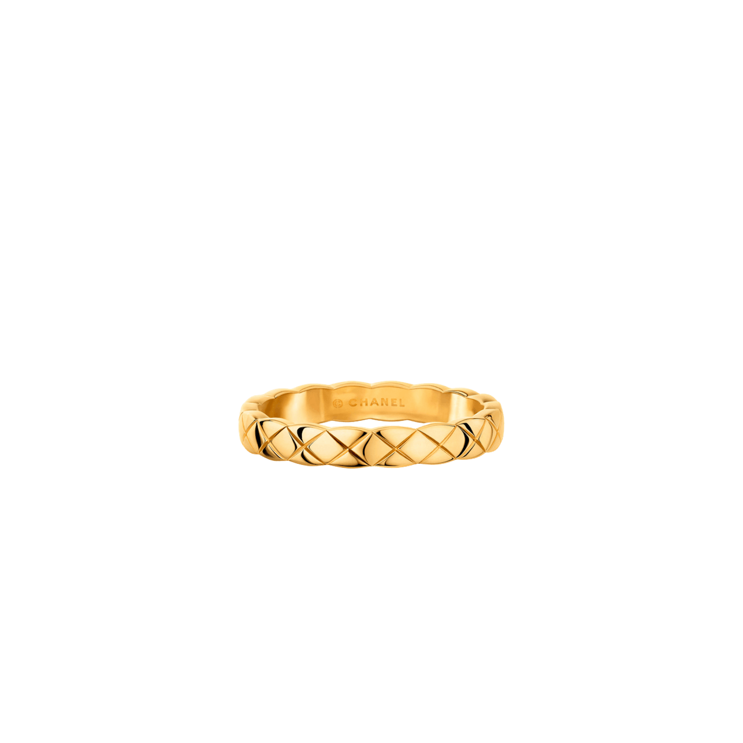The Coco Crush Beige Gold Quilted Small Ring offers understated sophistication. Crafted in CHANEL's proprietary beige gold, this slim ring brings warmth and subtle texture to a daily jewelry stack.