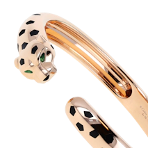 The Panthère collection is the brand's ultimate expression of power and sensuality. Often set with emerald eyes and diamond accents, the panther has prowled through Cartier's archives since 1914—appearing in rings, bracelets, and cuffs as a symbol of fierce independence.