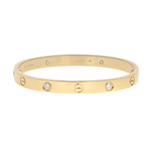 The Cartier Love bracelet is one of the most iconic luxury jewelry pieces ever created. Designed to symbolize enduring commitment, its secure locking mechanism and clean silhouette have become design hallmarks. Our collection includes second hand Cartier Love bracelets in yellow, rose, and white gold, as well as diamond-encrusted and slim versions - all thoroughly authenticated and ready to shop online.