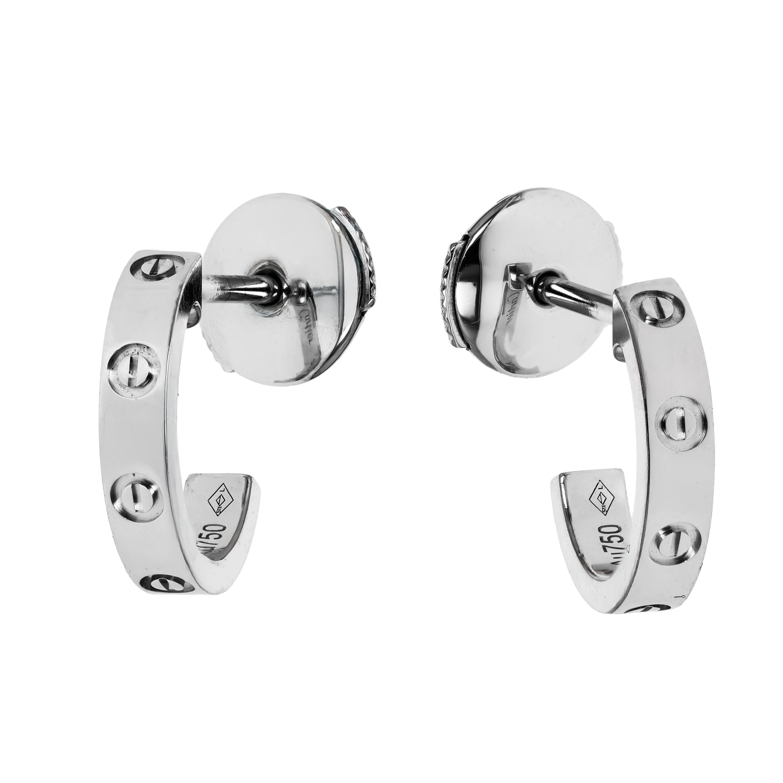 Shop pre-owned Cartier earrings featuring classic studs, hoops, and motif-driven designs from Love, Juste un Clou, and Panthère collections—each authenticated and selected with a collector's eye.