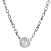 A pre-owned Cartier Love pendant in 18kt white gold. The necklace features a 17 inch long split cable chain with a lobster clasp and two high polished, interlocking rings stationed at the front. Both rings feature the signature screw-design evenly spaced around the outside.