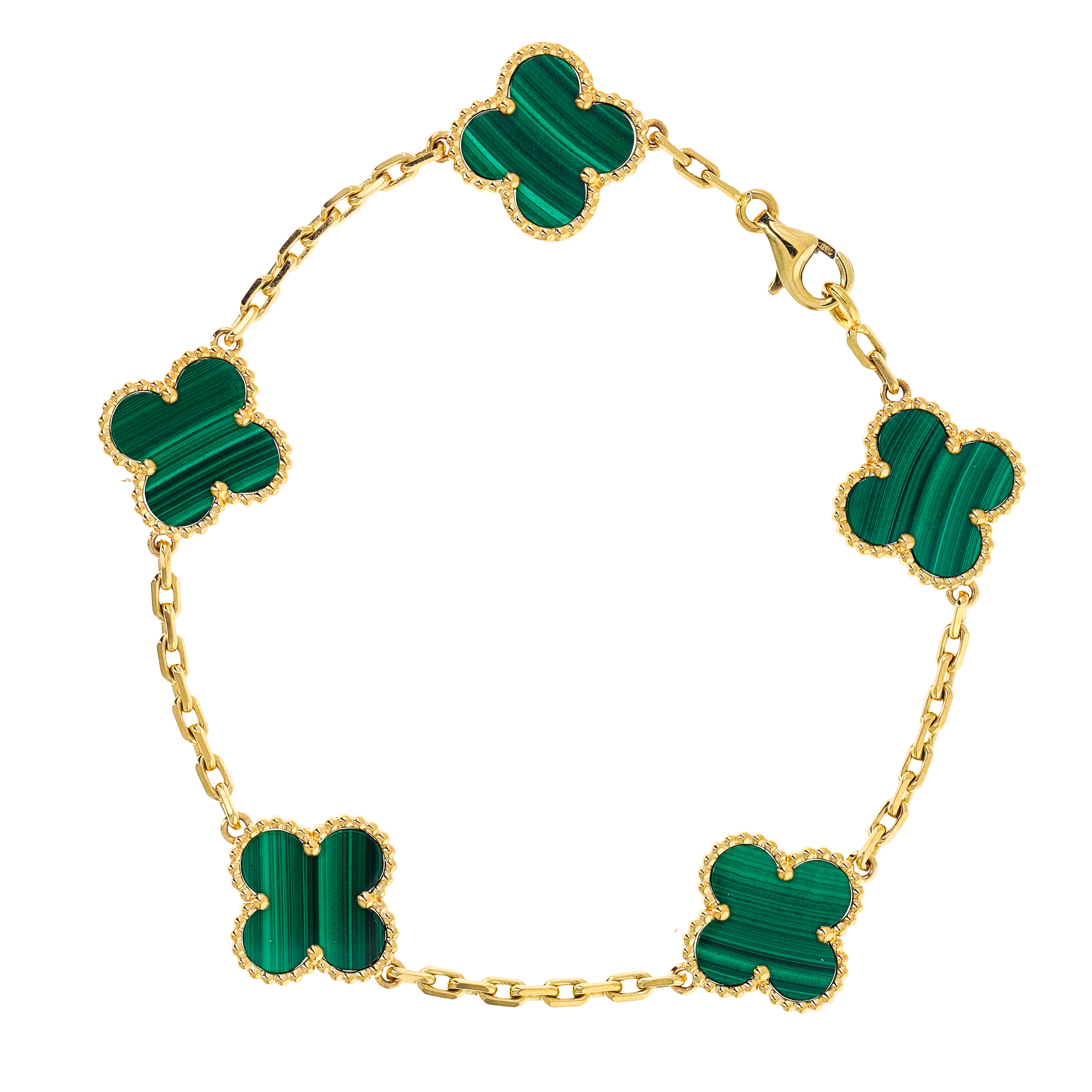 Yes. Our inventory may include Alhambra bracelets featuring mother-of-pearl, onyx, malachite, carnelian, and other materials, depending on current availability.