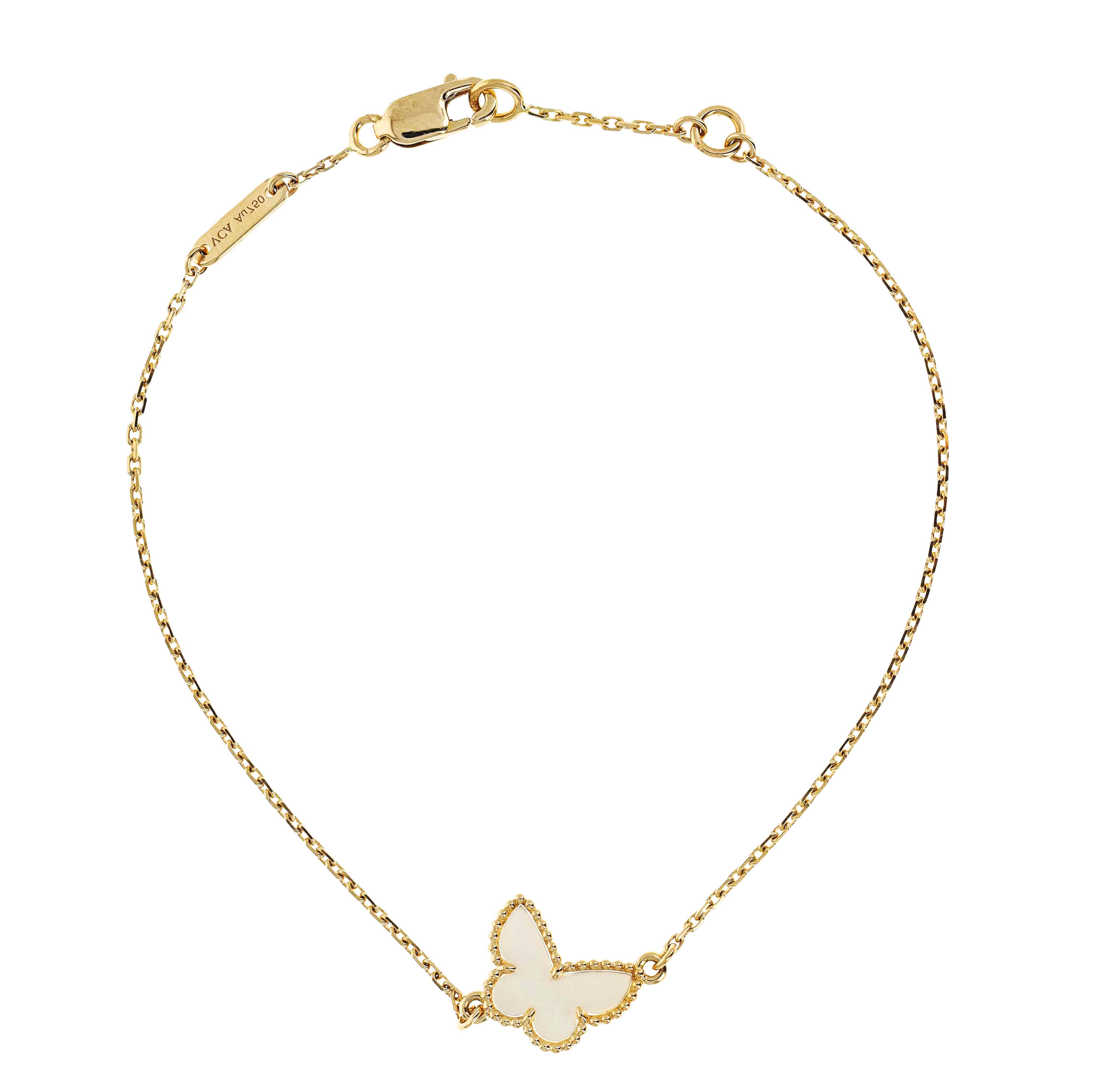 The Frivole collection captures nature in motion with heart-shaped petals and mirrored finishes. The Sweet Butterfly line offers delicate interpretations of one of Van Cleef's favorite themes. Both are available in chain bracelet styles, often accented with diamonds or colored gemstones for added radiance..