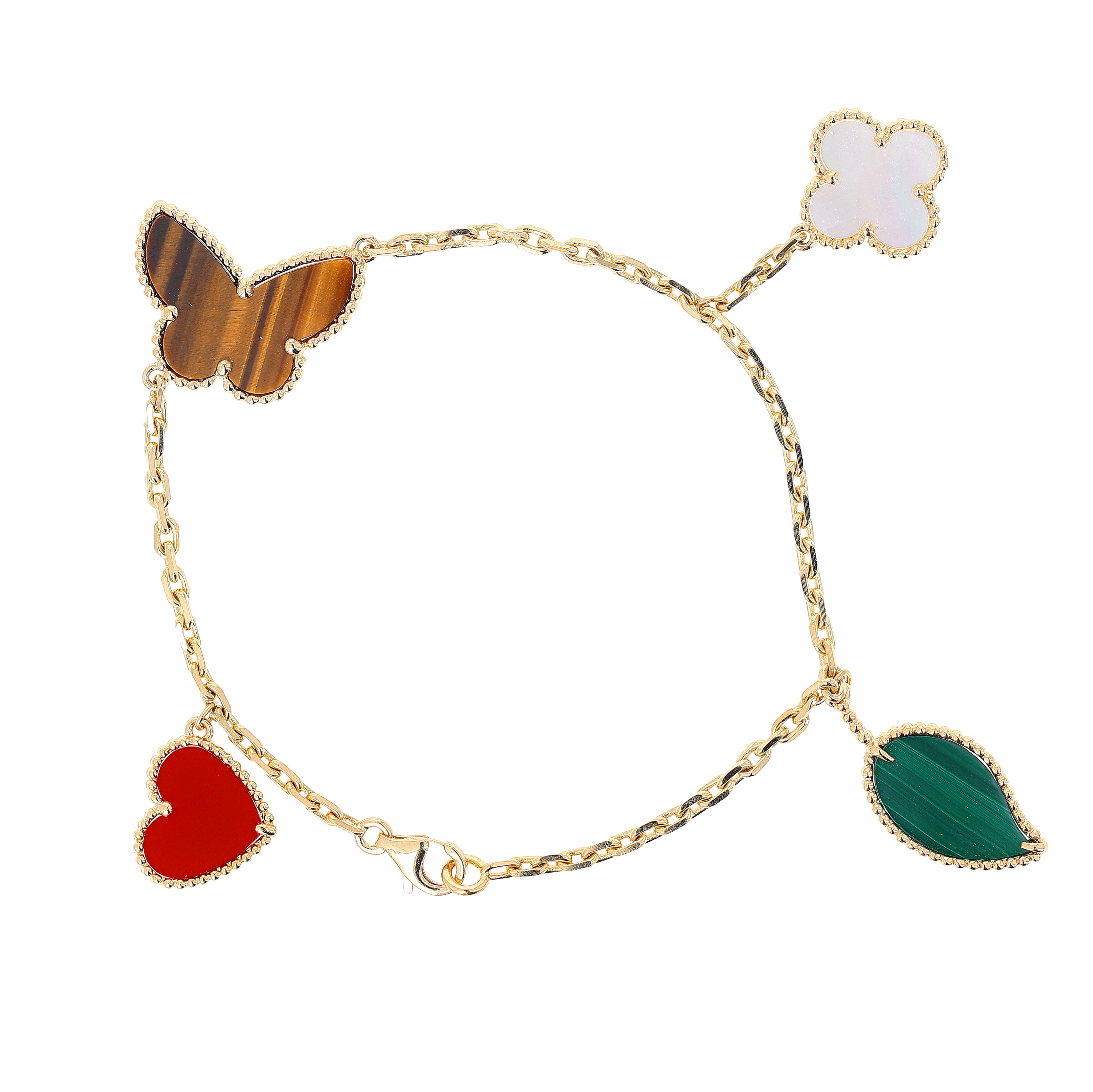 The Alhambra collection is perhaps the most recognizable of all Van Cleef designs. Featuring clover-shaped motifs that symbolize luck, love, and harmony, Alhambra bracelets are crafted in a variety of styles—from single-motif chains to multi-motif versions set in mother-of-pearl, onyx, or carnelian. Our pre-owned Alhambra selection offers access to styles that may no longer be in production..