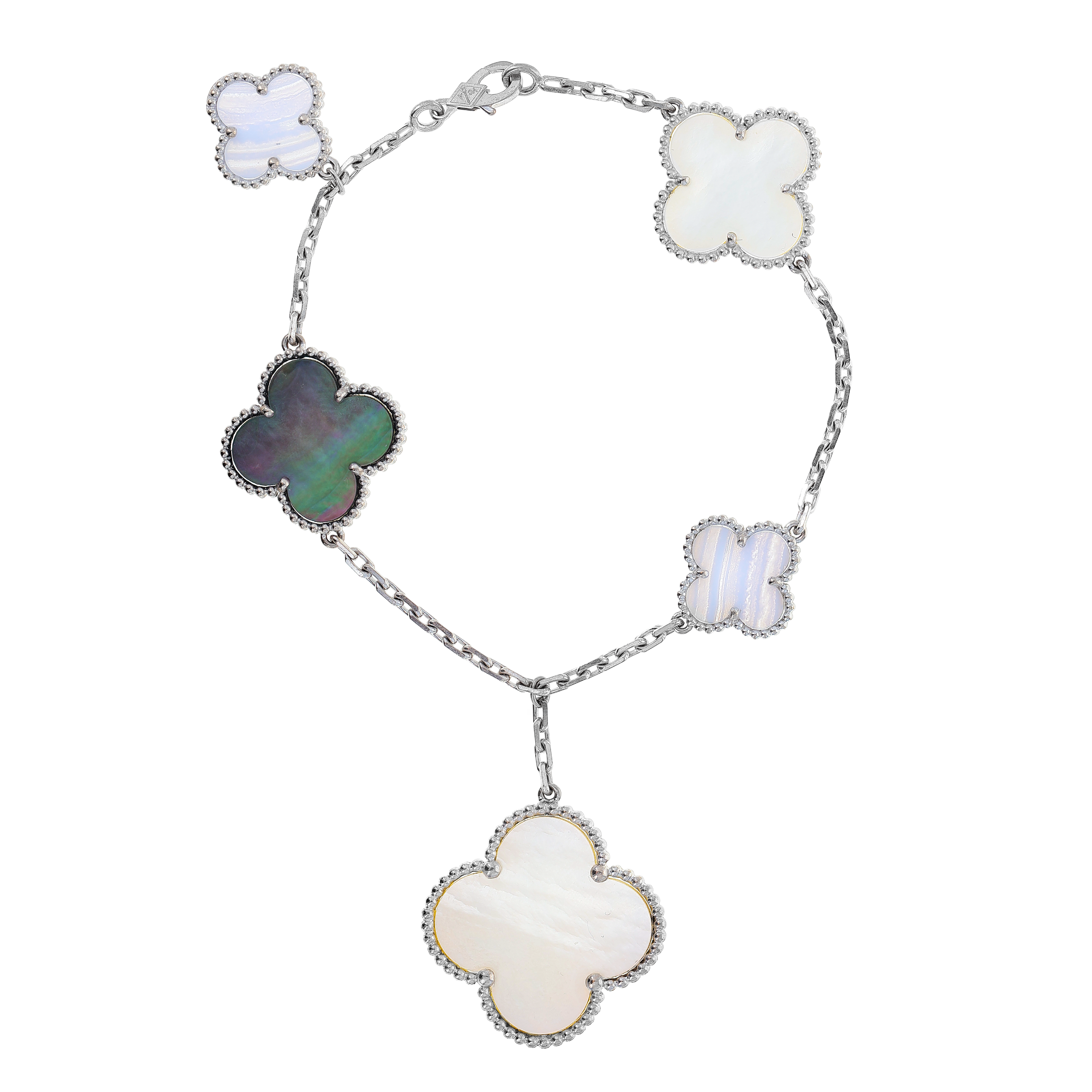 Yes. Our inventory may include Alhambra bracelets featuring mother-of-pearl, onyx, malachite, carnelian, and other materials, depending on current availability.