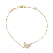 The Frivole collection captures nature in motion with heart-shaped petals and mirrored finishes. The Sweet Butterfly line offers delicate interpretations of one of Van Cleef's favorite themes. Both are available in chain bracelet styles, often accented with diamonds or colored gemstones for added radiance..