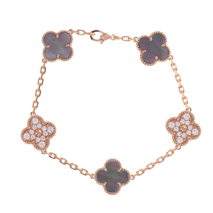 The Alhambra collection is perhaps the most recognizable of all Van Cleef designs. Featuring clover-shaped motifs that symbolize luck, love, and harmony, Alhambra bracelets are crafted in a variety of styles—from single-motif chains to multi-motif versions set in mother-of-pearl, onyx, or carnelian. Our pre-owned Alhambra selection offers access to styles that may no longer be in production..