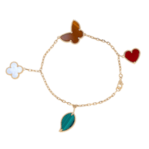 The Frivole collection captures nature in motion with heart-shaped petals and mirrored finishes. The Sweet Butterfly line offers delicate interpretations of one of Van Cleef's favorite themes. Both are available in chain bracelet styles, often accented with diamonds or colored gemstones for added radiance..