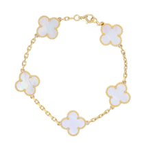 The Alhambra collection is perhaps the most recognizable of all Van Cleef designs. Featuring clover-shaped motifs that symbolize luck, love, and harmony, Alhambra bracelets are crafted in a variety of styles—from single-motif chains to multi-motif versions set in mother-of-pearl, onyx, or carnelian. Our pre-owned Alhambra selection offers access to styles that may no longer be in production..