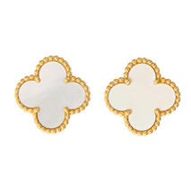 Introduced in 1968, the Alhambra collection remains one of Van Cleef & Arpels' most recognized designs. The quatrefoil shape, inspired by Moroccan architecture and associated with good fortune, is rendered in vibrant materials such as malachite, onyx, carnelian, turquoise, and mother-of-pearl. Our pre-owned assortment includes both Magic Alhambra and Vintage Alhambra earrings, available in yellow, white, or rose gold settings with or without diamond accents.