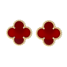 Introduced in 1968, the Alhambra collection remains one of Van Cleef & Arpels' most recognized designs. The quatrefoil shape, inspired by Moroccan architecture and associated with good fortune, is rendered in vibrant materials such as malachite, onyx, carnelian, turquoise, and mother-of-pearl. Our pre-owned assortment includes both Magic Alhambra and Vintage Alhambra earrings, available in yellow, white, or rose gold settings with or without diamond accents.