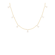 Diamonds by the Inch necklaces feature bezel-set diamonds spaced evenly along a gold chain. Available in various lengths, these pieces are essential for layering or wearing as subtle standalone statements.