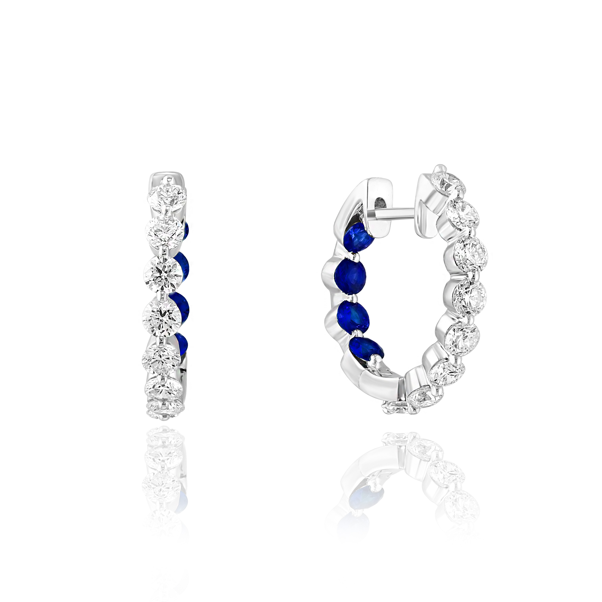 14k White Gold Diamond & Sapphire Inside-Outside Huggie Hoop Earrings