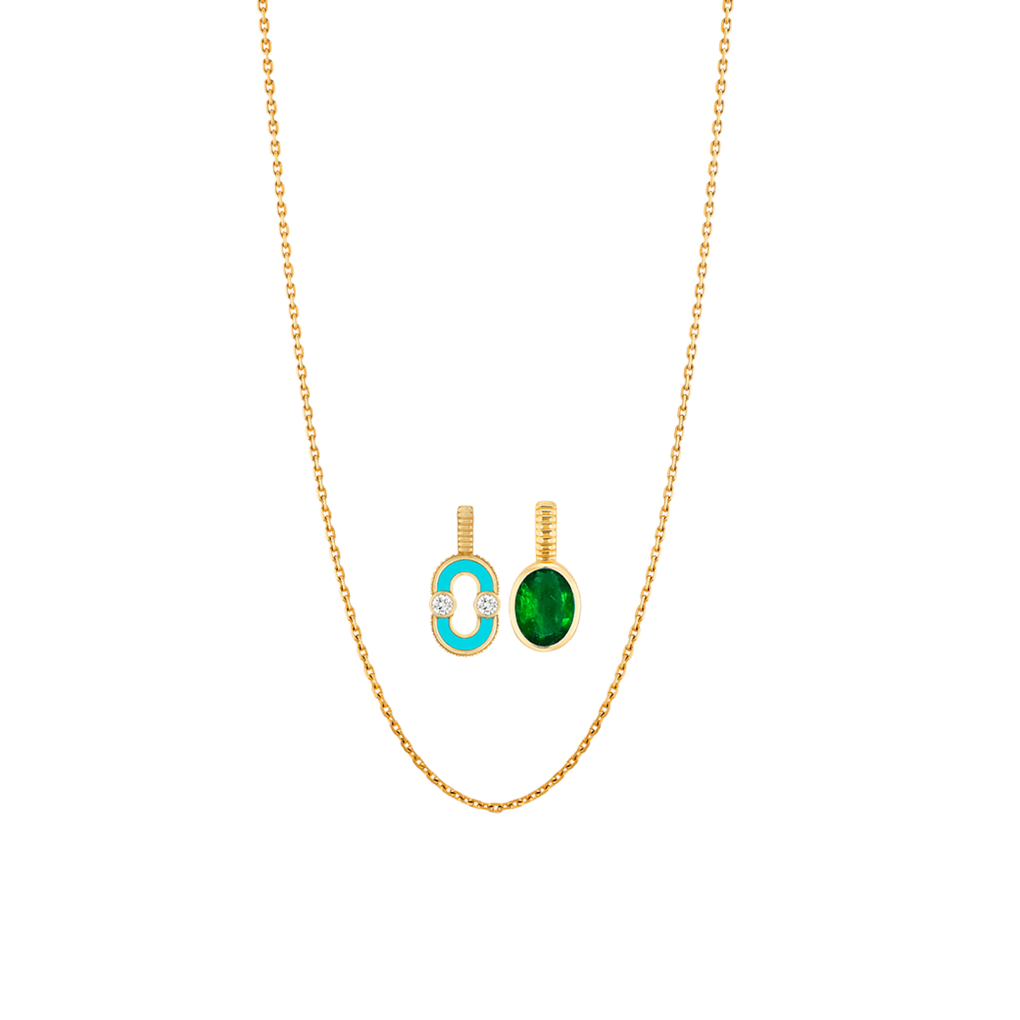 The Magnetic collection showcases the house's most iconic aesthetic: interlocking gold shapes adorned with vivid lacquer or pavé diamonds. These pieces speak to human connection and dynamic harmony—colorful, optimistic, and instantly recognizable.