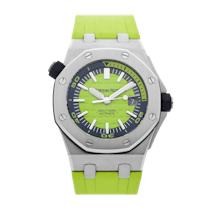 Our collection features rare and discontinued references favored by collectors. Highlights include the Royal Oak Offshore Safari , known for its tan dial and brown strap combination, and the Black Ceramic Offshore Chronograph , featuring a black Méga Tapisserie dial with a matching ceramic bezel. Also of note is the vibrant Turquoise Offshore Diver , a bold stainless steel variant with a vivid blue dial and rubber strap.