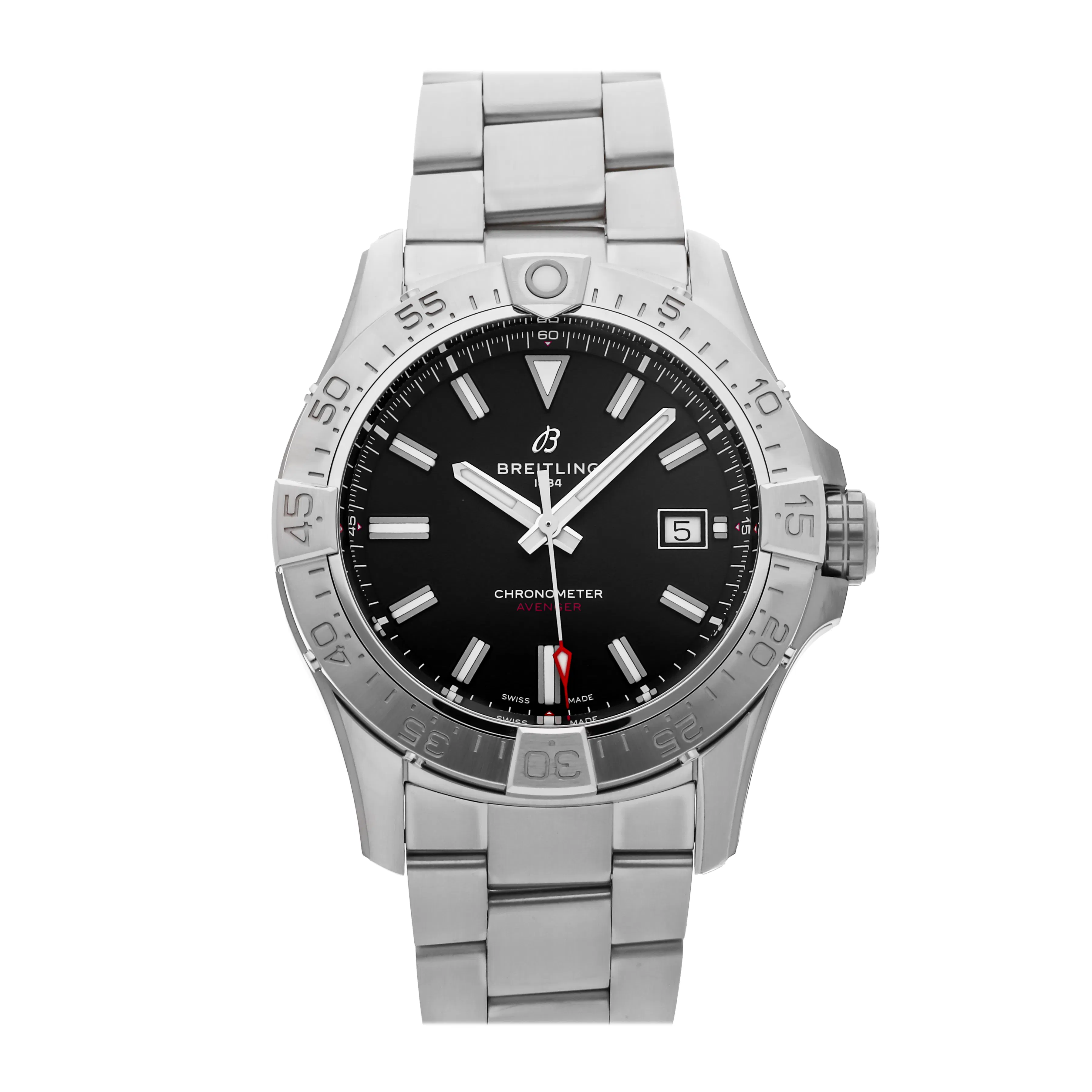 Where the Chronomat leans into Breitling's heritage as a pilot's chronograph with integrated bracelets and more refined profiles, the Avenger prioritizes resilience and utilitarian appeal. Avenger watches are typically thicker, with more aggressive crown guards and dial legibility designed for mission-critical use. Both are COSC-certified and highly functional — but appeal to different mindsets and wristwear needs.