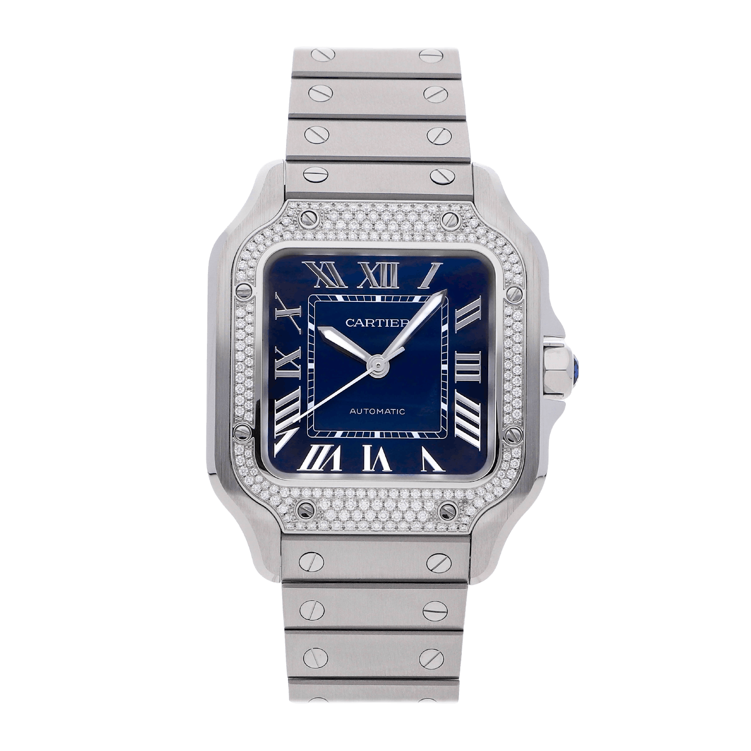 For a stealthier look, the Cartier Santos ADLC Black Coated Model delivers a matte black finish with a sporty edge, while maintaining the classic Santos silhouette. Medium models such as the Cartier Santos Medium Model measure a more versatile 35mm width, often preferred for smaller wrists or more traditional proportions.