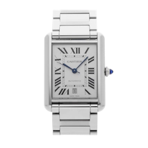 Pre-Owned Cartier Tank Francaise Large (WSTA0067) self - winding automatic watch, features a 36.7mm x 30.5mm stainless steel case surrounding a silver roman dial. The watch is secured on a stainless steel bracelet complete with a folding clasp. Functions include hours, minutes, seconds and date. This watch comes complete with the original box and papers. Time remaining on factory warranty! This watch will be ready to ship in 5-7 days!