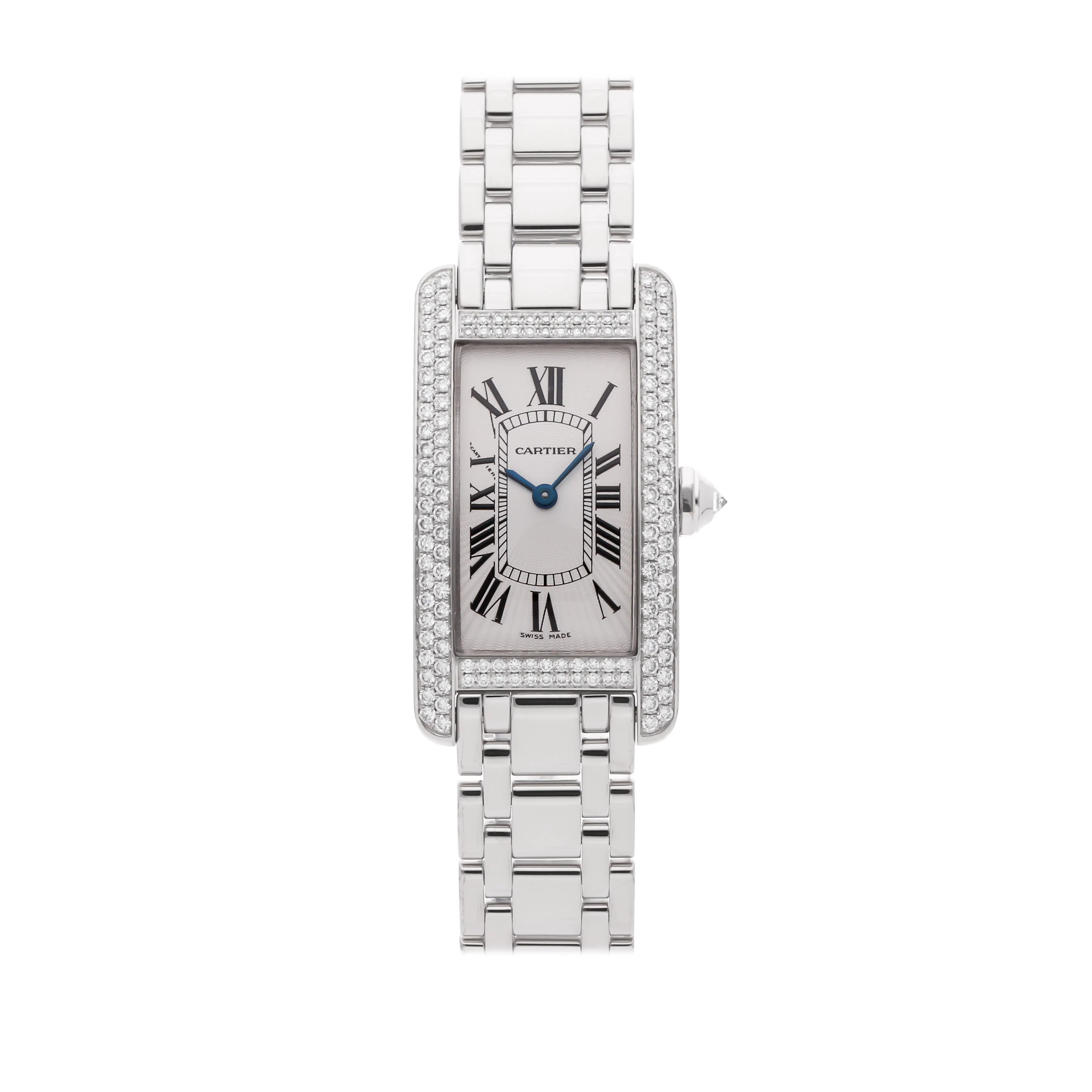 The Tank Américaine, introduced in 1989, elongates the proportions of the Tank Cintrée to create a sleek, curved profile that hugs the wrist. It offers a more modern presence while retaining Cartier's classic codes. Available in steel and precious metals, with both quartz and mechanical movements, the Tank Américaine is a favorite among collectors who prefer a slightly bolder rectangular case with elegant curvature.