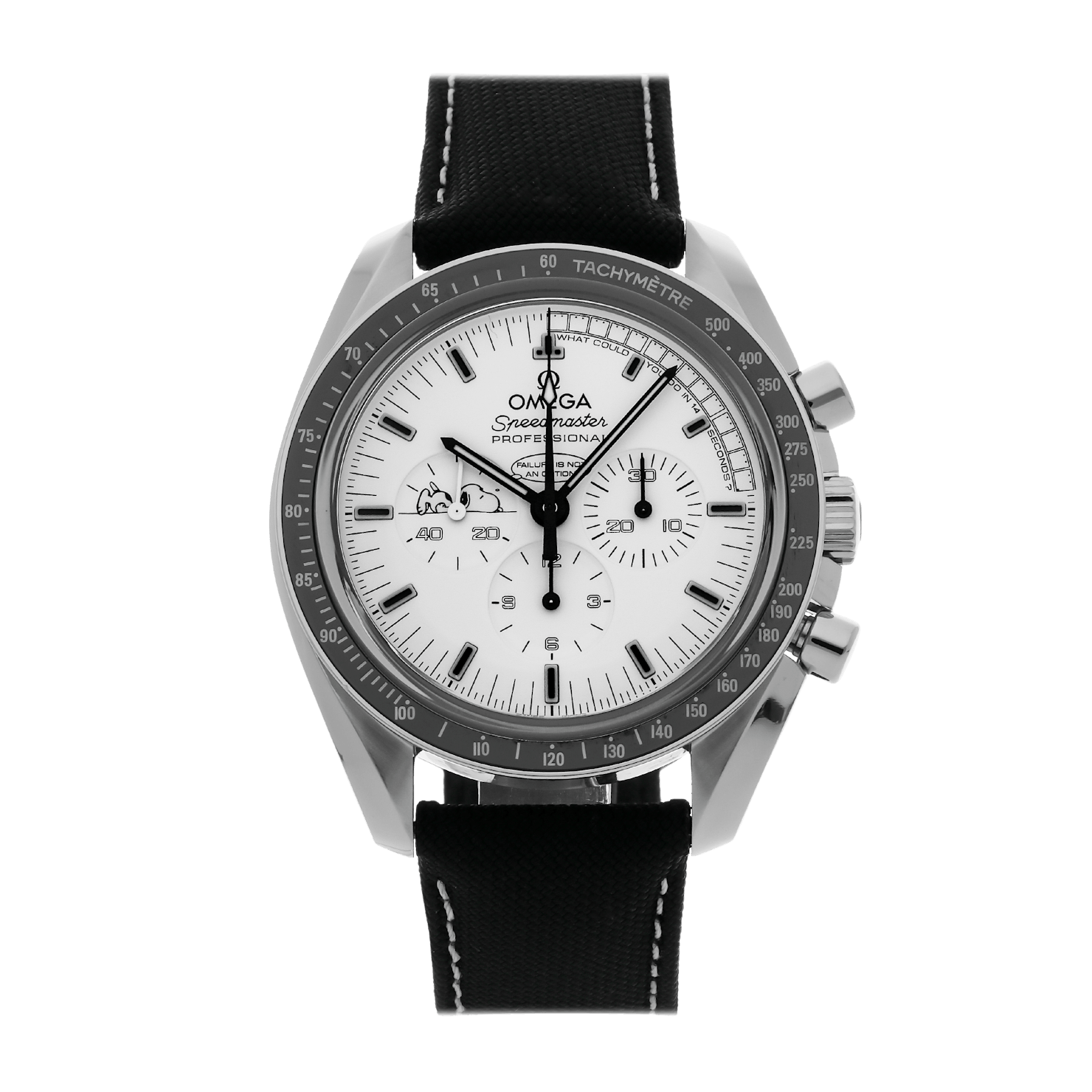 - Apollo 13 Snoopy 45th Anniversary (Ref. 311.32.42.30.04.003) - This white-dial Speedmaster features the iconic Snoopy comic strip character and honors the critical timing role Omega played in safely bringing Apollo 13 home.