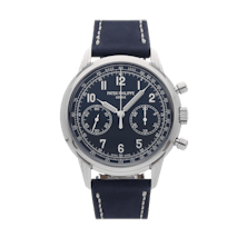 The 5172G offers a beautifully proportioned manual-winding chronograph in white gold. With its blue dial, vintage-style round pushers, and tachymeter scale, it delivers classic chronograph performance with a refined modern edge.