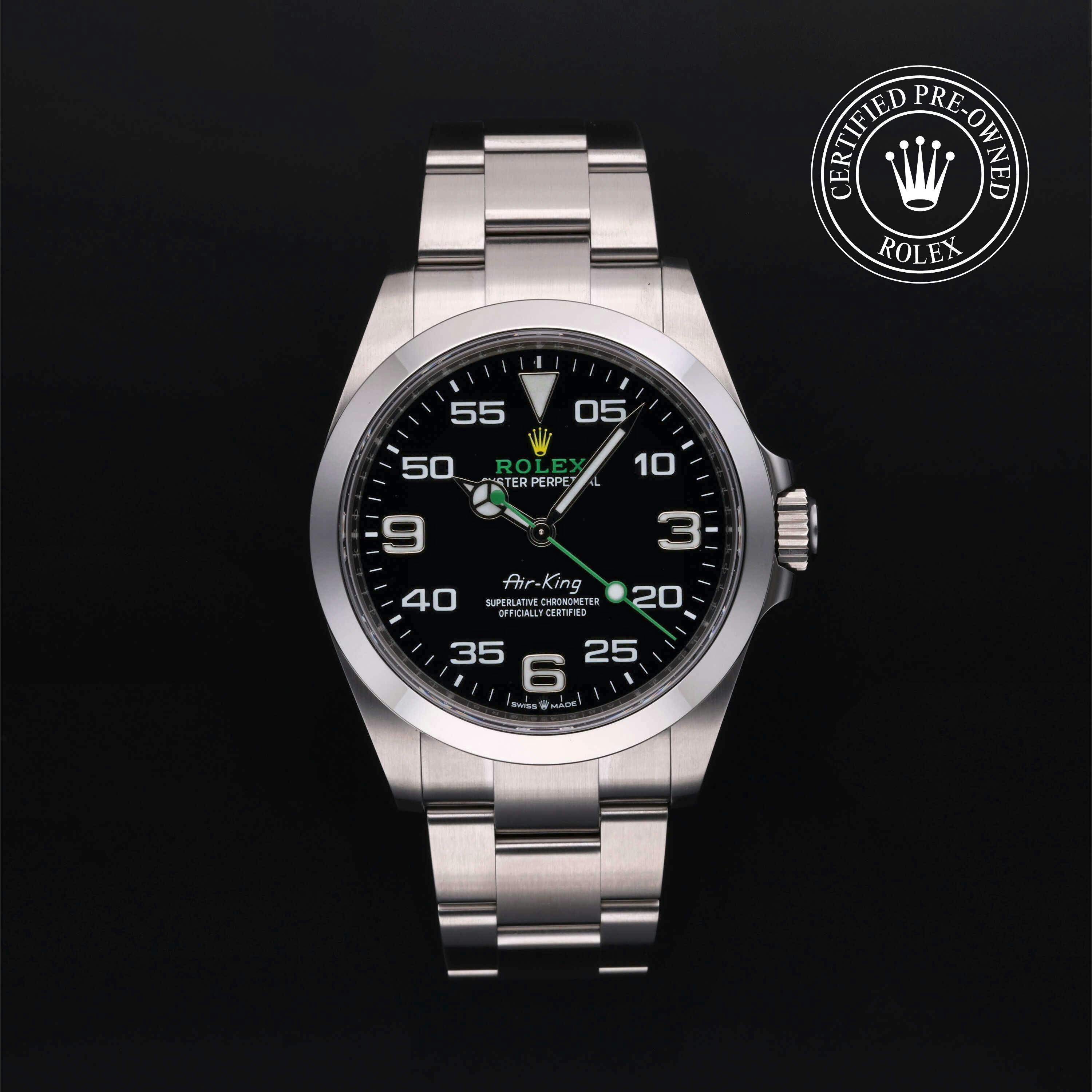 If you're considering a dressier or more feature-rich alternative to the Air-King, explore our collections of Rolex Certified Pre-Owned Datejust or Day-Date watches. Whether you seek understated elegance or modern sport-watch capability, our Rolex Certified Pre-Owned collection ensures every piece is verified for authenticity and restored to impeccable condition.