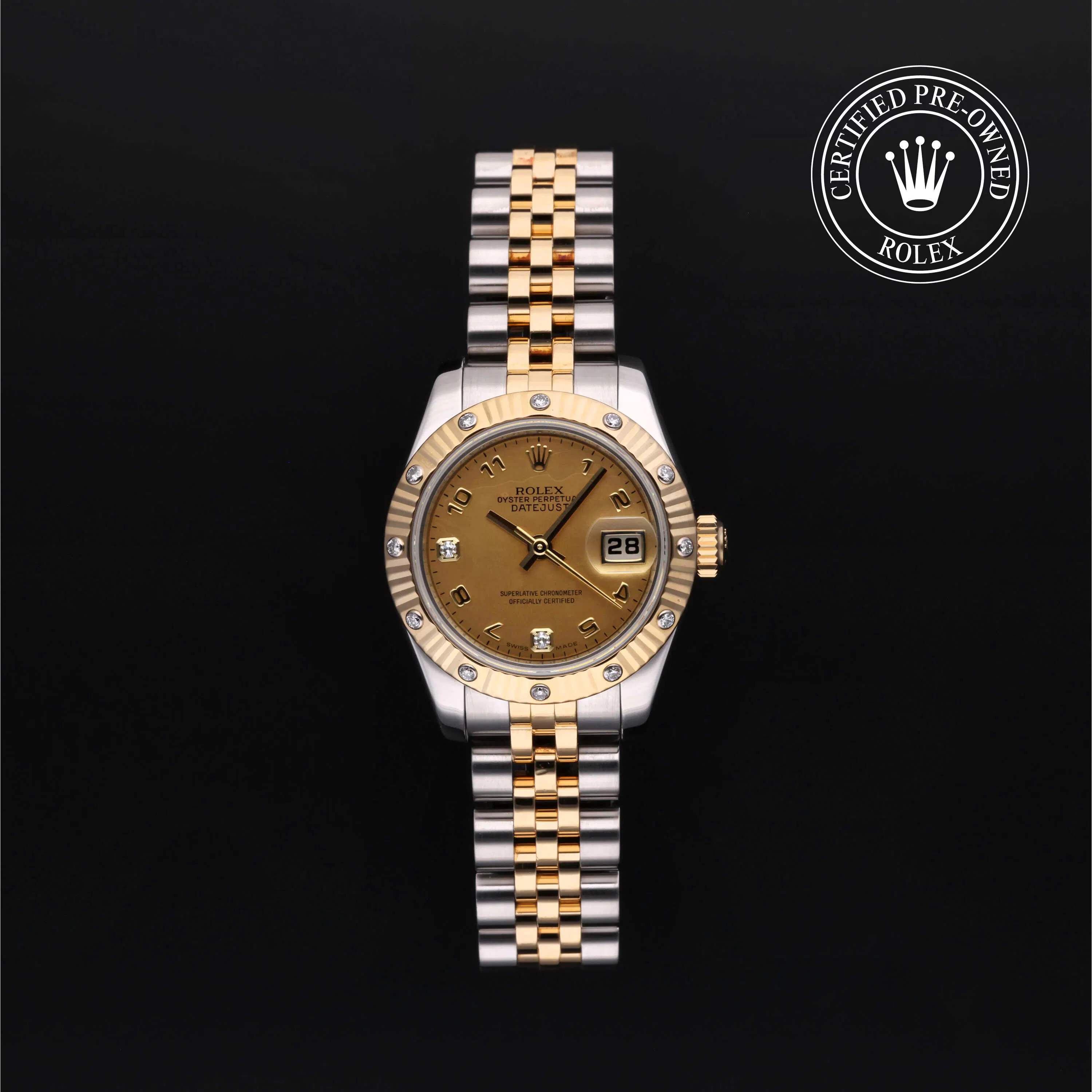Rolex has introduced rose gold, steel, and two-tone references, known as Rolesor. Though most recognizable with its fluted bezel, the Datejust has also been produced with domed, smooth, and engine-turned bezels. The Datejust collection offers a variety of case sizes for both men and women, including 28mm, 31mm, 34mm, 36mm, and 41mm. Designed in a wide range of metals, dials, textures, bracelets, and marker styles, the Rolex Datejust offers nearly endless configurations, many of which are available on the pre-owned market.